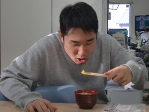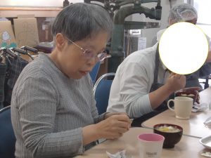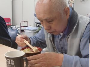 アツアツのと豚汁を「ふぅふぅ~」と息をかけながら冷まし召し上がられました。