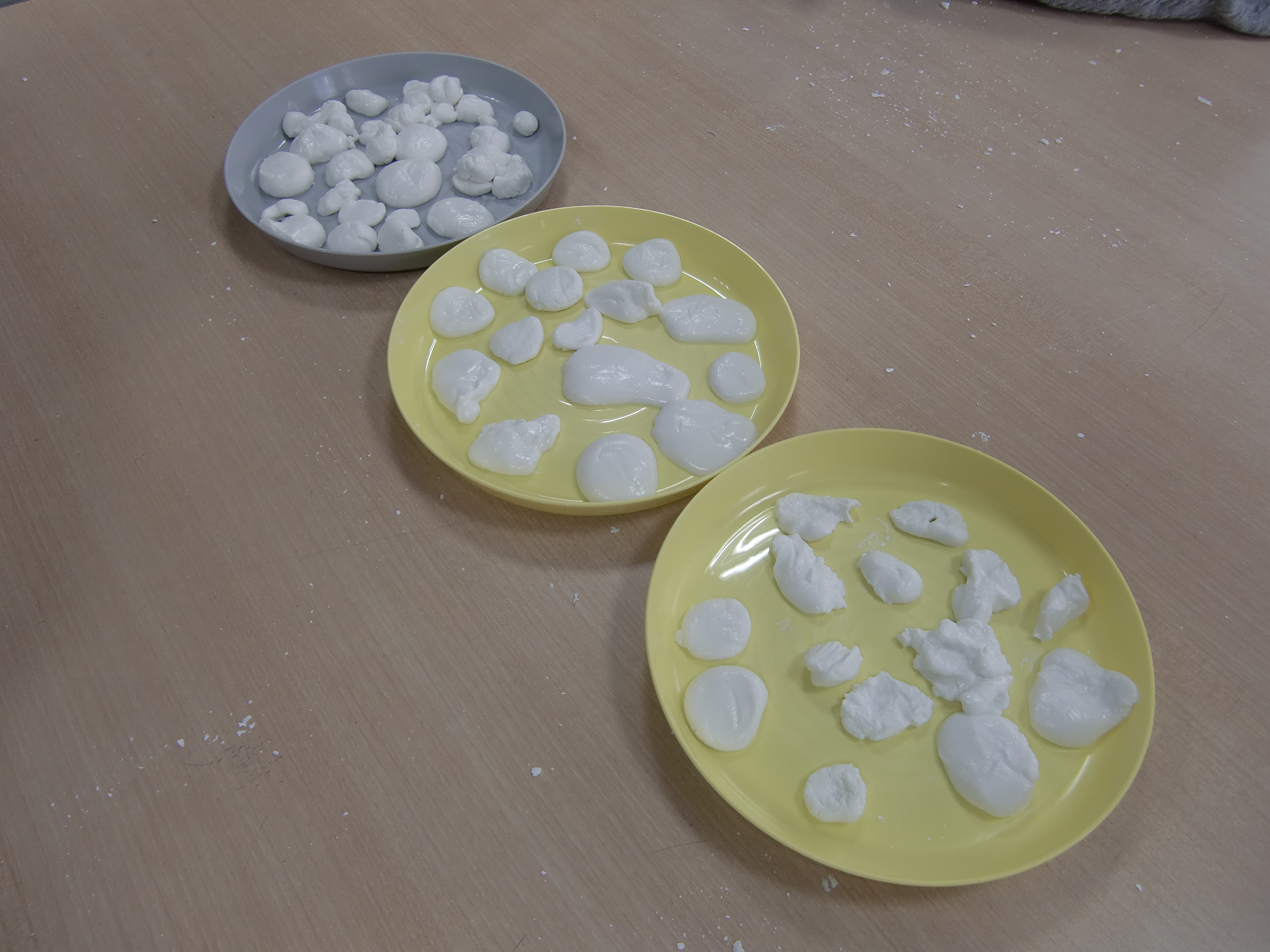 白玉粉は強く触ると固まるのに、優しく触るとベチャー・・・っとなり