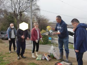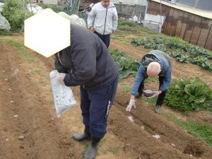 2種類の肥料を重ね合わせ、まきました。