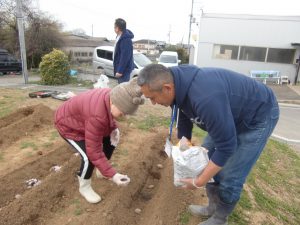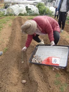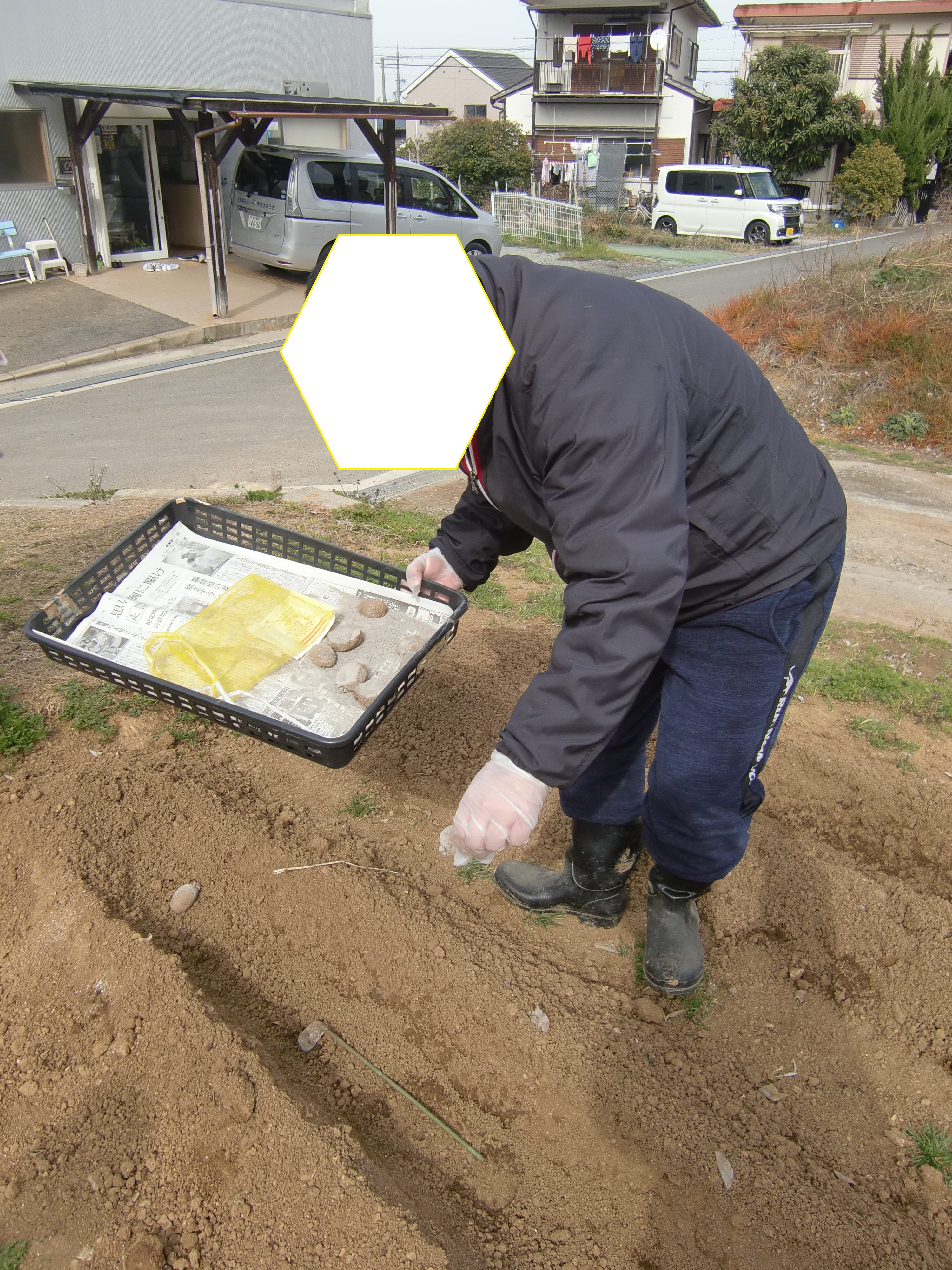 そして、🥔と🥔の間隔をあけ、植えていきます。