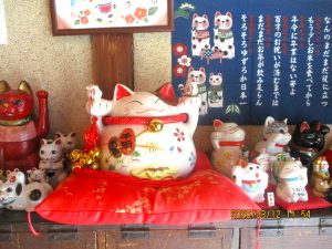 古民家を活かした趣きあるたたずまい。玄関では招き猫達が賑やかに迎えてくれました。