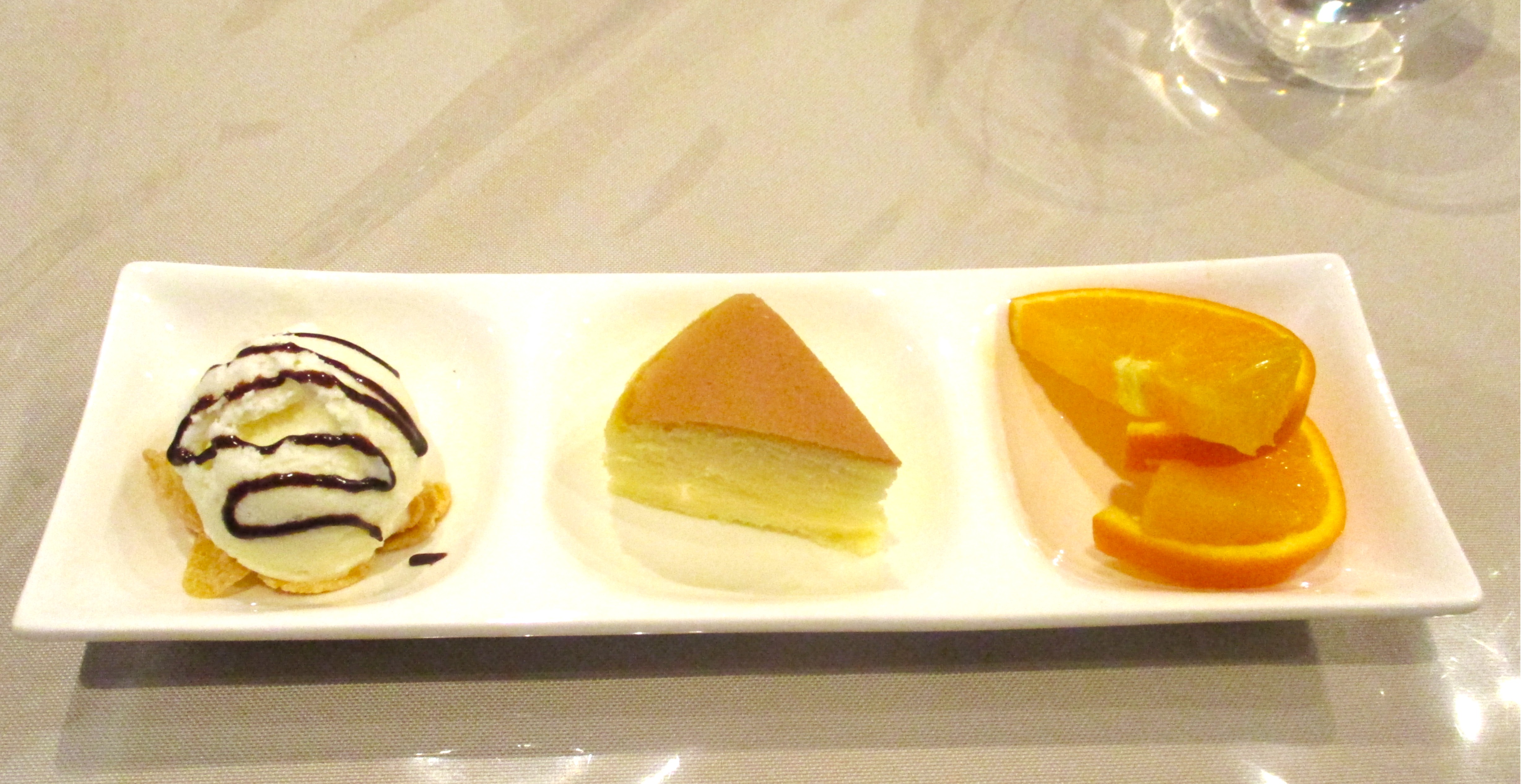 アイスクリームとチーズケーキ、オレンジの三連プレート🍊